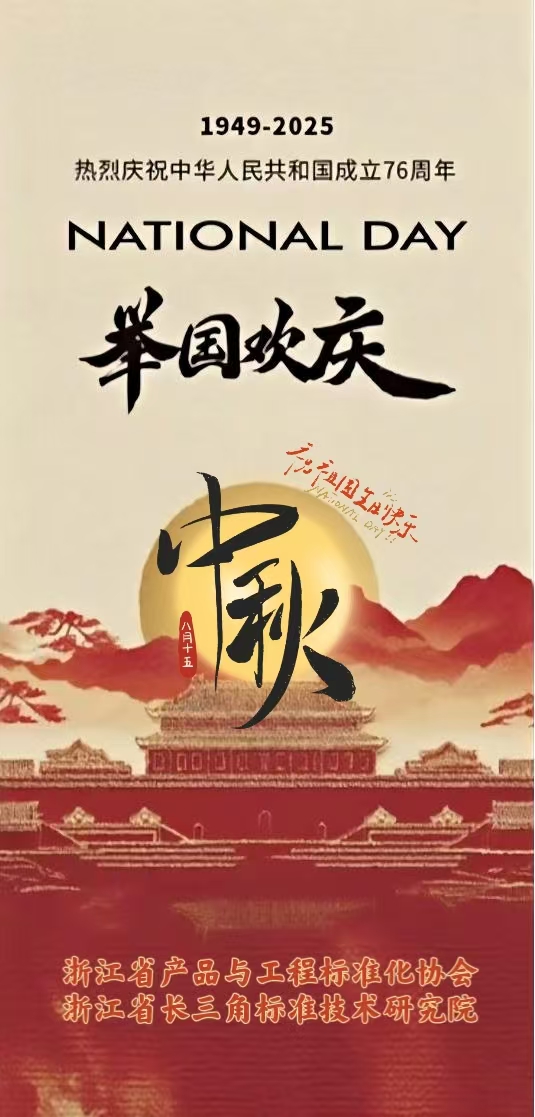 举国欢庆,月映征程。双节并至,浙江省产品与工程标准化协会,浙江省长三角标准技术研究院祝全体同仁:举国欢庆推质效升级,月满征程耀供给新篇!